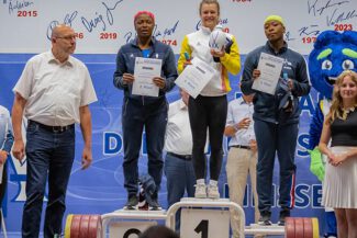 Gehoben wurde in diesem Jahr nach der Sinclair-Methode, die allen Teilnehmer faire und gleichberechtigte Chancen ermöglichte. Auf der Heberbühne gab es einen ständigen Wechsel in der Pokalführung und der Wettkampfverlauf war an Spannung kaum zu überbieten. Zunächst lag Janette Ylisoini aus Finnland an der Spitze, bevor Marie Fegue aus Frankreich ihren Platz in der Leaders-Box einnahm. Nina Sterckx, die Vorjahressiegerin bei den Frauen, präsentierte sich in Olympiaform. Sie lag deutlich mit 437,41 Sinclairpunkten in Führung und die Sensation in der Luft, dass erstmals eine Frau nach dem Siegerpokal greifen würde. Mit 348 kg im Zweikampf aus Reißen und Stoßen gelang es dem glänzend aufgelegten Julio Ruben Mayora aus Venezuela (Zweiter der olympischen Spiele 2021) nur mit einem neuen Pokalrekord von 455,81 Punkten (alter Rekord, 438,67 Pkt.) die Belgierin von der Führungsposition zu verdrängen und stolz den großen Siegerpokal in Empfang zu nehmen.