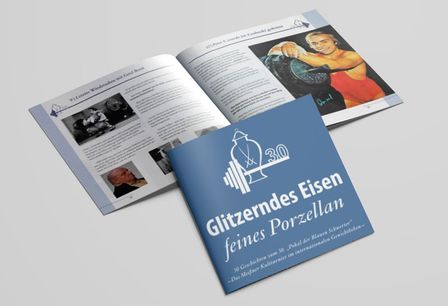 Die 76 Seiten umfassende Schrift „Glitzerndes Eisen – feines Porzellan“ enthält ein stolzes Stück Gewichtheben – sozusagen „Blaue Schwerter“ für zu Hause und zum Verschenken. Daten, Fakten, Geschichten und „Geflüstertes“ aus der 48-jährigen Geschichte von Deutschlands bekanntestem Wettkampf im Gewichtheben, dem internationalen Turnier um den Pokal der Blauen Schwerter.