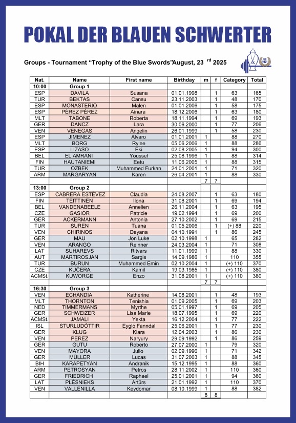 Neuigkeiten vom Pokal der Blauen Schwerter